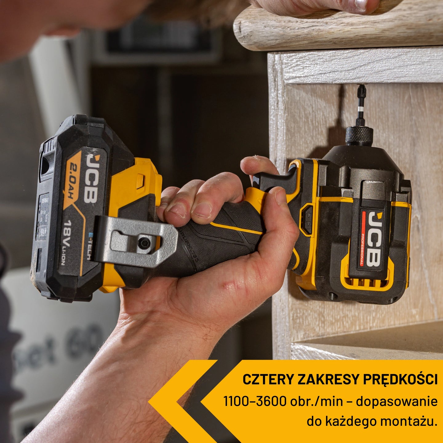 Wiertarko-wkrętarka JCB-18PCD-75 oferuje moment obrotowy 75Nm, 2-biegową przekładnię (0-500/0-2000 OPM) i częstotliwość udaru do 28 800 ud./min. Regulacja momentu obrotowego (20+1+1 pozycji) pozwala precyzyjnie dostosować pracę do materiału. Zakrętarka udarowa 230Nm pracuje w 4 trybach z cyfrową regulacją prędkości (0-3300 OPM). Oba narzędzia wyposażone są w oświetlenie LED, uchwyt Soft Grip i elektronikę PCB chronioną przed pyłem. Zestaw elektronarzędzi zawiera szlifierkę kątową akumulatorową JCB-18PAG-125 z hamulcem elektrycznym, beznarzędziowym mocowaniem tarczy oraz 4-stopniową regulacją prędkości (2700-9000 OPM).